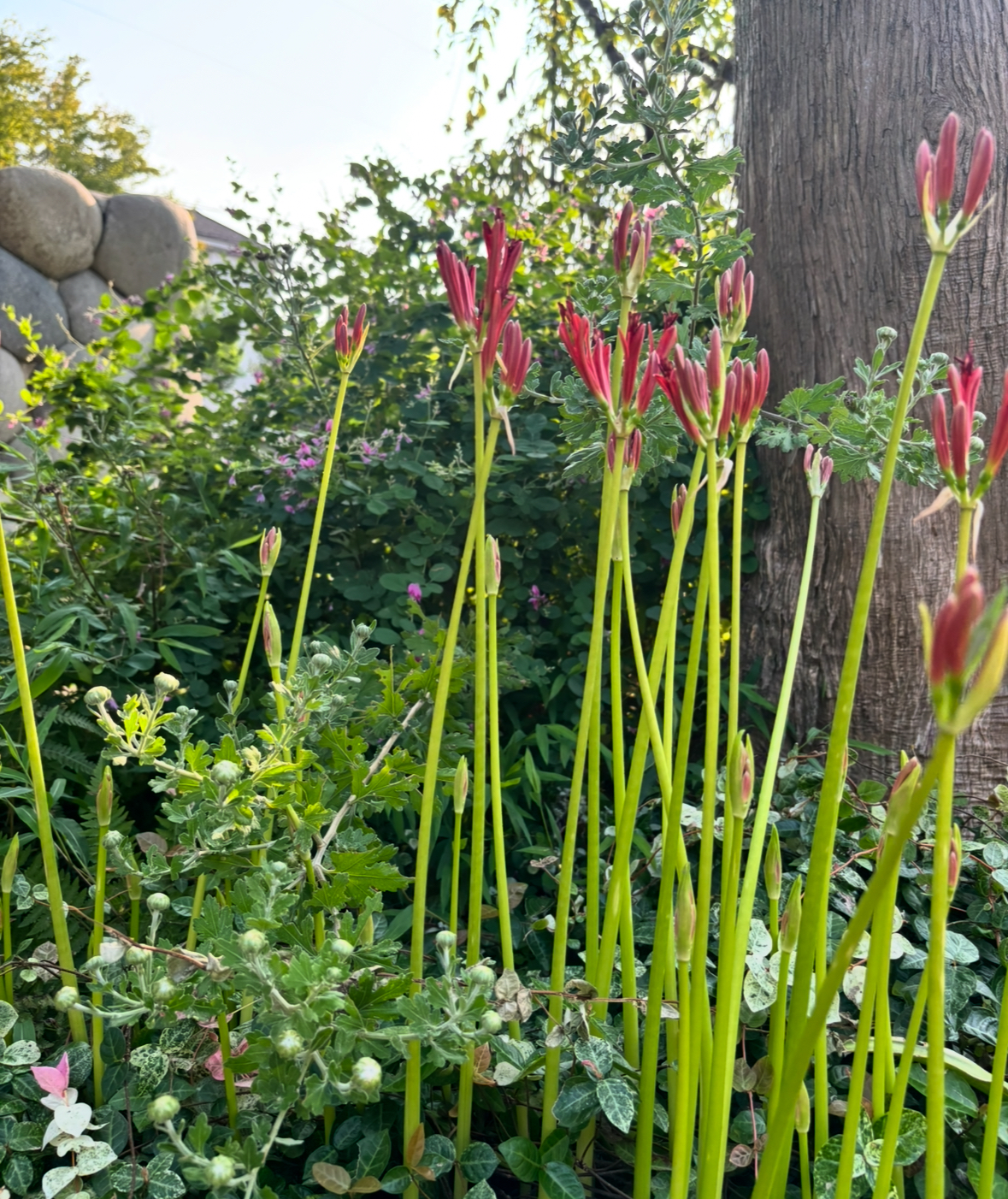 汗はポタポタと落ちてきますが💦💦 境内を見渡すと、しっかり秋はやってきています。萩が咲き、彼岸花が伸びてきていました😳 この暑さの中でしっかりと咲こうとしている彼岸花。自然ってスゴイ‼️ 何もこれといった手入れをしていないのに、いつものところでいつものように咲こうとしている強さに健気さすら感じてしまいます☺️