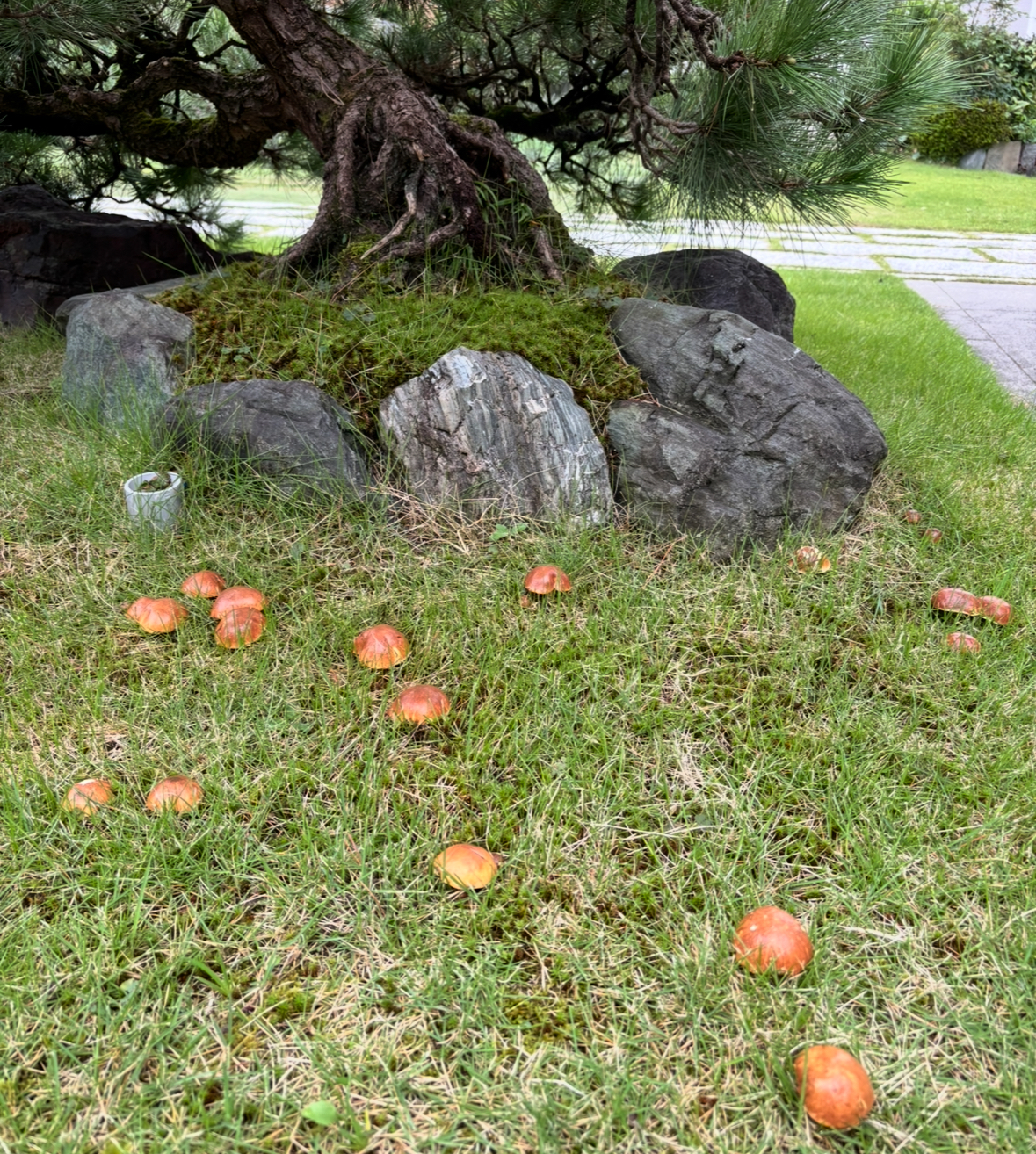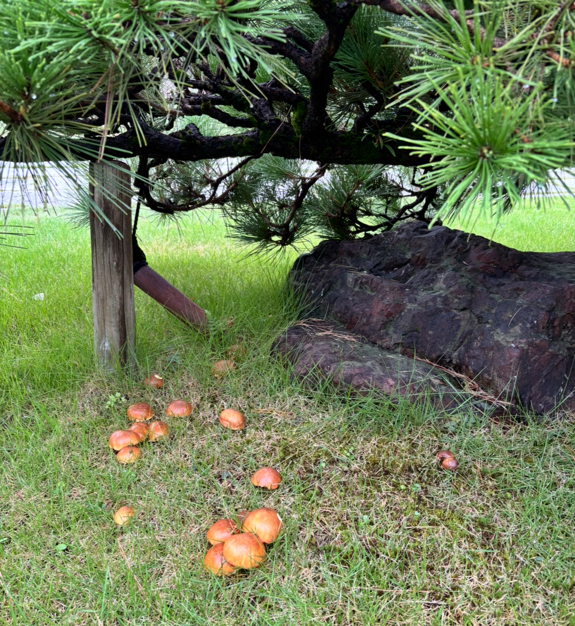 境内では、なぜかキノコ🍄🟫があちらこちらに生えてきています。Google先生に食べれるのか聞いてみたら、食べれると書いてあるのですが、怖くて食べていません😅