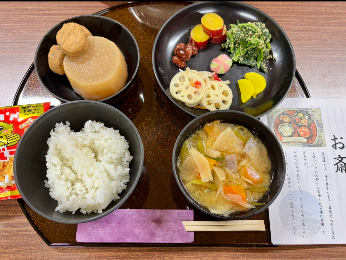 まずは住職のこと・・・毎年、名古屋別院の報恩講にお勤めさせていただいており、今日で全てを厳修いたしました🙏 私はと言うと、10年ぶりに坊守の助音としてお勤めに参加させていただくご縁をいただきました🙏 アフターコロナから初めて御斎が再開され、大根炊きをいただけることをとても1番の楽しみにしておりました😋色んな地域の坊守さん方との会話も弾み、まさに、"こころ豊かに力身に満つ"を実感しました🙏