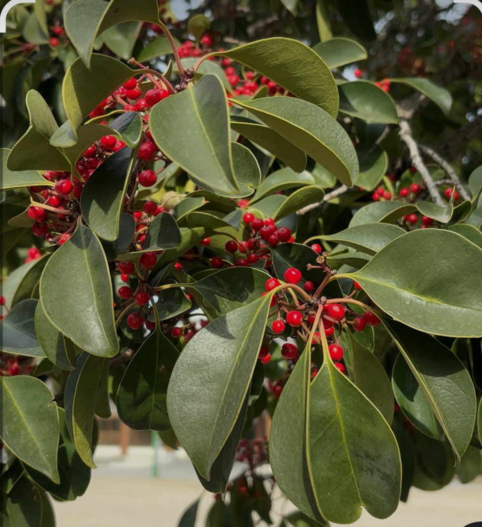 境内にはクロガネモチの木に赤い実がぎっしりと付いていて、秋とは違った雰囲気を醸し出していました😊